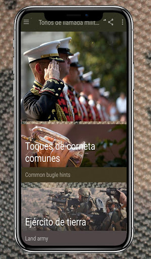Tonos de llamada militares gratis es la gran colección de música militar como tonos militares únicos que puede usar como tono de llamada, tonos de notificación, tonos de alarma, asignar a un contacto directamente y mucho más.