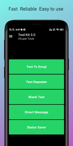ToolKit 3.0 ,Toolkit whatsapp contains all tools for whatsapp to make your whatsapp experience very smooth and entertaining. You will get everything in a single app. From whatsapp tools top stylish texts, opening whatsapp messages chat, amazing quotes and tricks for texts and emojis, power tools and whatsapp trim tools.