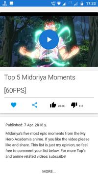 I this application you will see Top 10 Action, Romance, SuperPower, Fights...etc. There are lots of videos you will love it.Find Anime related videos which includes Top 10's, Fights, epic moments and more all in 60FPS!