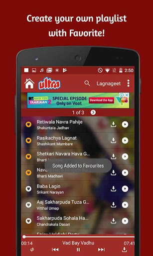 Ultra Media & Entertainment brings to you huge collection of Lagnageet Songs.The app hosts a plethora of Songs, in audio and video format which can be marked as favoutires and viewed unlimited number of times. The app also contains caller tunes.