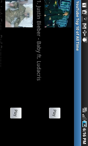 youtube Top Ten of all time as of July 2012UNOFFICIAL NOT AFFILIATED WITH YouTube1. Justin Bieber Baby ft. Ludacris2. Jennifer Lopez On The Floor ft. Pitbull3. Shakira Waka WakaThis Time for Africa4. Lady Gaga Bad Romance5. Eminem love The Way You Lie ft. Rihanna6. Charlie bit my finger again 7. LMFAO Party Rock Anthem ft. Lauren Bennett, GoonRock8.Michel Tel Ai Se Eu Te Pego Oficial Assim voc me mata9. Don Omar Danza Kuduro ft. Lucenzo10. Eminem Not Afraidkeywords TopTen YouTubeYouTube Top Ten video Top Ten