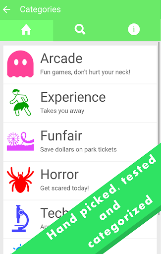 - VR specific categories such as 'Horror' and 'Funfair'