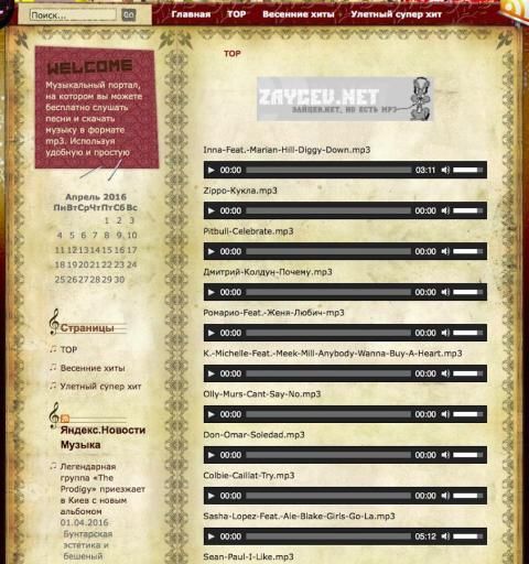 I like to listen and download music online? So with the application of top birds there you do it all in seconds. The largest number of songs! We gathered there (Zaycev.net) for you in the appendix of hares. You may be aware of all the music novelties. In this app you will find many options for sorting by genre, title, date, etc. One-touch upload to their favorite songs on the device. Zaitsev is not do everything for you. With Zaycev you can download your favorite artists and playlists individually compositions. The app contains a huge and the best to date music selection. Search in our application runs on a variety of languages and allows in seconds find the music tracks. Just type in the search bar you are interested in the musicians or musical groups. Before downloading, you can listen to the music track and immediately download it. Our intelligent system will tell you similar in genre compositions. We are a lot of options for sorting of songs and artists. Just go into the Zaytsev.net! Listen and download all you like!