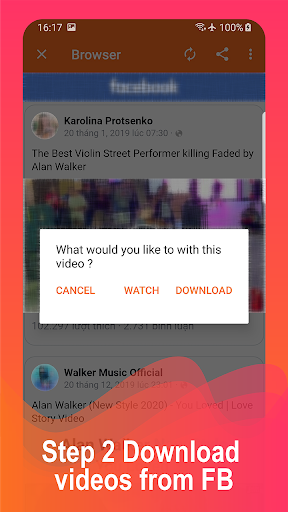 Top video downloader allows you to browse your news feed and your friends/pages walls to select the video you want to download and save them.