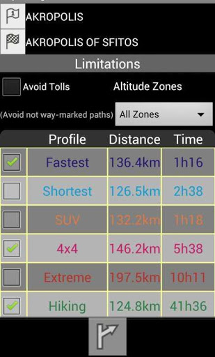 • Online routing for Greece. Options include fastest & shortest route, altitude zone, toll avoidance.