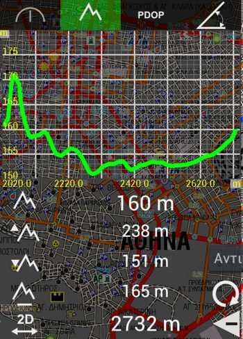 • Points & lines digitized on screen (off GPS fix) get elevation values from a high accuracy 30m cell Digital Elevation Model (currently DEM is server-based and only covers Greece).
