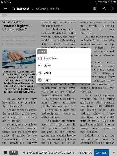 With the Toronto Star ePaper, you can read the Toronto Star online in its true printed format from anywhere in the world. Along with the newspaper-like feel of flipping through pages and sections, you can also use electronic enhancements such as keyword search, or access editions of the newspaper from up to 6 months prior. Plus, the ePaper edition is social; you can share articles, from a trusted source, with friends and colleagues via Facebook, Twitter, and email.