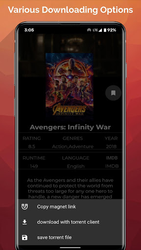 • This app uses the APIs provided by the YTS website itself and is not associated with YTS