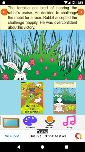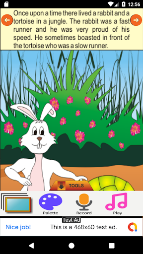 Page 1: Once upon a time there lived a rabbit and a tortoise in a jungle. The rabbit was a fast runner and he was very proud of his speed. He sometimes boasted in front of the tortoise who was a slow runner.