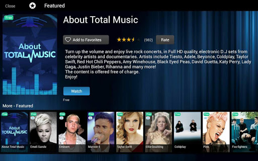 Total Music offers its viewers an un-compromising video quality experience, with up to full HD 1080p broadcast quality for its content. A minimum of 5Mbps WIFI connection is recommended in order to fully enjoy the best viewing experience for HD content.
