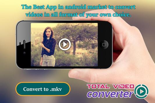 Total Video Converter Android (TVC) is the best (and free!) Total video converters on Android for Android. With the background ffmpeg library support, Video converter for Android can convert almost any video formats to mpeg4 and h264 videos, including asf, avi, divx, flv, m2v, m4v, mjpeg, mkv, mov, mpg, ogg, ogv, rm, rmvb, webm, wmv, dv4 etc.