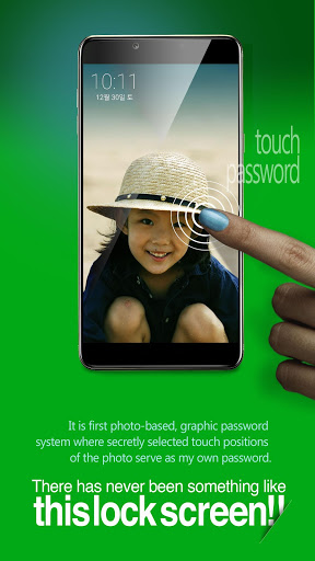 The touch lock screen can simply set a "touch password" with the touch of specific positions on my photo such as eyes, nose, mouth, face, or hand.