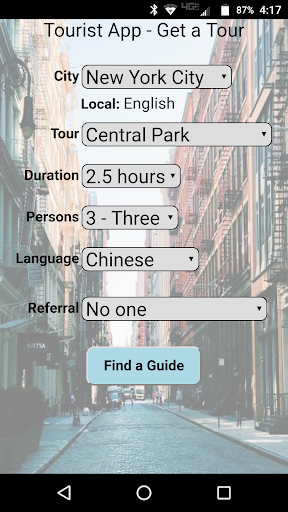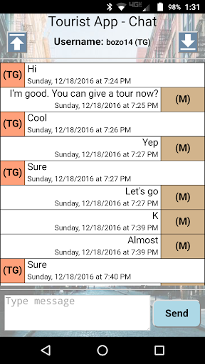 Tourist App democratizes the Travel and Tour Guide industry by providing a marketplace for Tourists and Tour Guides to connect on demand and in real time using their geolocation and instantaneous mobile payments. A tourist or local requests a tour then a tour guide responds to it and a virtual handshake is established. After, they agree to meet and venture onto a tour to sightsee places, explore the city and discover its history with culture.