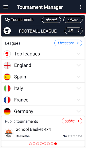 You can create different tournaments for all popular sports and games with automatic or manual scheduling, detailed standings and rich statistics.