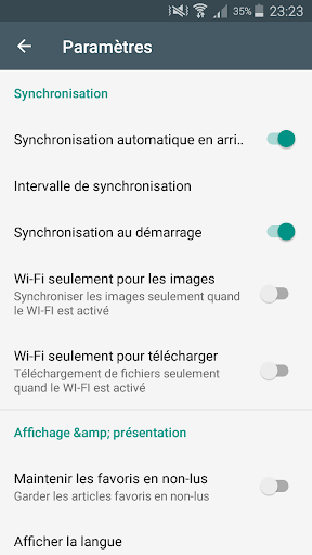 kemampuan untuk memutuskan kapan dan bagaimana memperbarui berita, frekuensi menerima pemberitahuan, pilih nada dering dan penggunaan LED dan Getaran untuk pemberitahuan, kecuali barang-barang yang disukai dan banyak lagi.