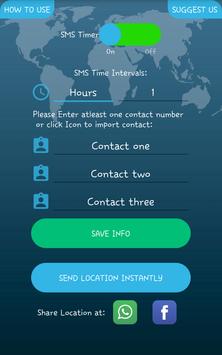 Track Me also enables you to enter time in Hours and Minutes. You can send location SMS to maximum 3 numbers at a time using SMS Timer.