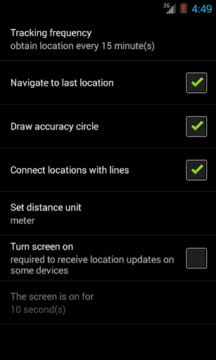 NOTE: If you are not getting the GPRS/Wi-Fi location updates when the screen is off try to enable “Turn screen on” option.