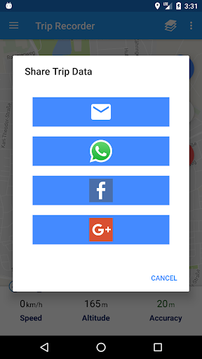 • Recorded trip information can be shared on WhatsApp and Facebook or via email