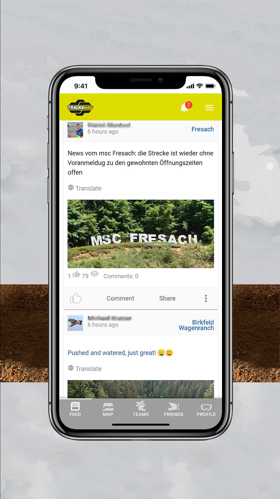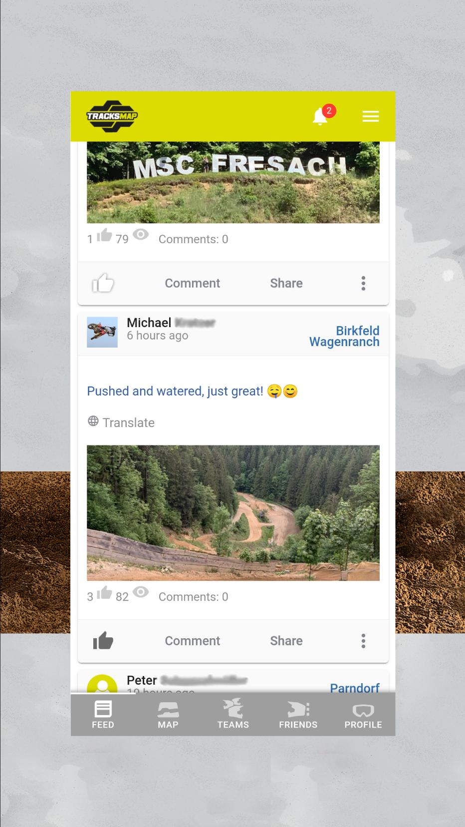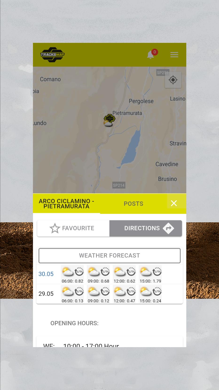 With TracksMap you can choose to put a track on the list of your favorite tracks and you will receive notifications as soon as the managers or other drivers post news on the favorite track.