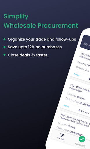 Whether you are a buyer, supplier, trader, broker, wholesaler or just getting started in the global trading business. Trade Hub can help you stay on top of your procurement process and close deals faster. Get real time prices of commodities and raw materials from your trading partners in any part of the world. Everything at the comfort of your mobile device.