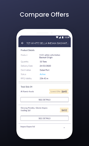 Negotiate and get better prices from your suppliers. Easily create and share requirements with your trading partners to get offers instantly. Compare offers from multiple partners, send counter proposals and finalize deals through the app.