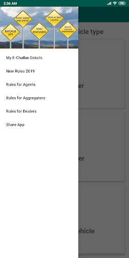 4. Rules for Agents, Aggregators, and Dealers (Menu Options) - The new Motor Vehicles Amendment Act, 2019 [New Challan List 2019] coverage is not just limited to end-users but has been expanded to cover the ill acts of vehicle agents, aggregators such as Ola & Uber and motor dealers as well. The listed options on the app will help you embrace knowledge on those fronts in a quick glance.