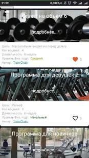 5) Обновляющаяся лента тренировочных программ поможет подобрать лучшую программу, а также есть возможность оставлять заявки со своими тренировочными программами, после публикации которой все увидят автора и смогут использовать ее.