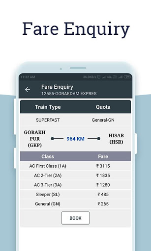 - Find information on trains running between any two stations including fare and real-time