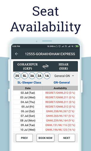 TRAIN SEAT AVAILABILITY & BOOKING