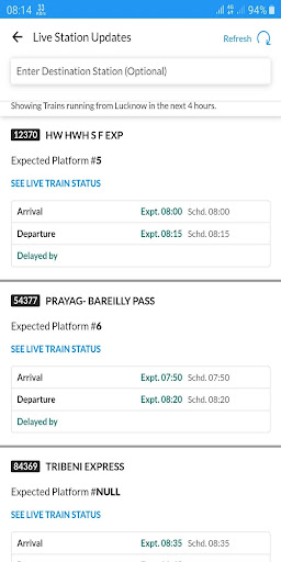 DISCLAIMER: This app provides data from third party websites. This app is not affiliated with NTES or IRCTC any way. By using this app, you are solely responsible for any legal implications/liabilities arising from using the app.
