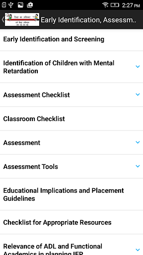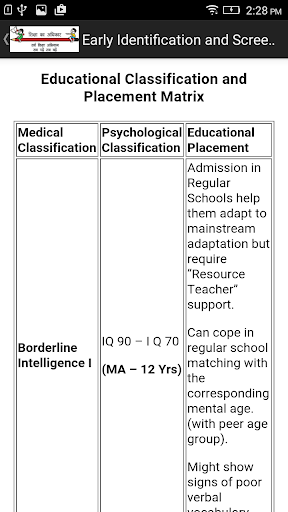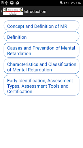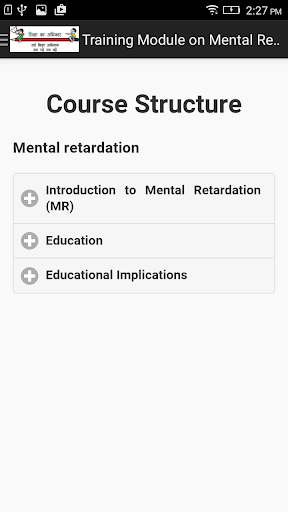 App provides training material for special educators on Mental Retardation. It provides course stucture, objectives, characteristics and classification of Mental Retardation, Early Identification, Assessment Types, Assessment Tools, Certification and Educational Aspects in an interactive way.