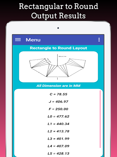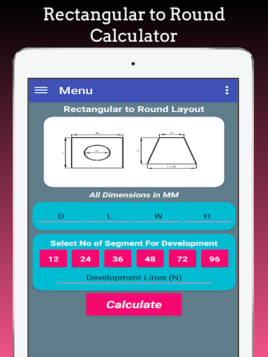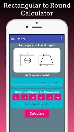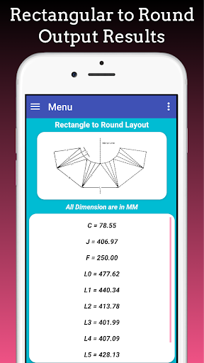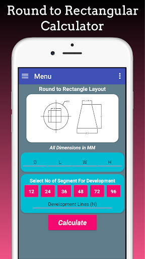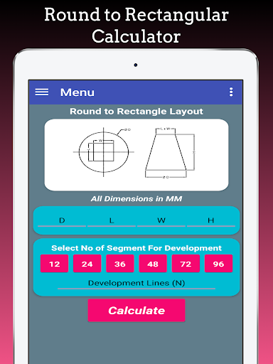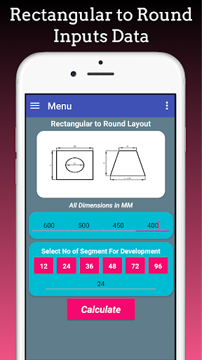 This app has various options for Square to Round development or Rectangular to Round and Round to Square development or Round Rectangular Development.