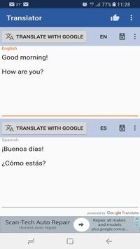 This is the perfect Translator to translate texts and languages ​​quickly into your phone, mobile or tablet.
