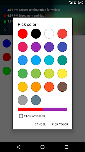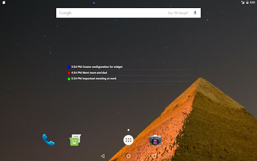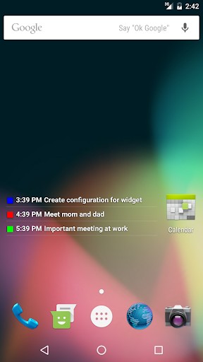 Transparent Calendar Widget lets you see your calendar events on the home screen without opaque backgrounds that blocks your beautiful wallpaper. The colored indicators on each rows tells you what calendar the event comes from.
