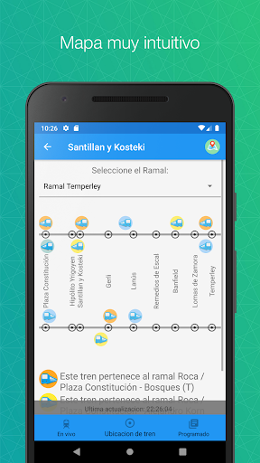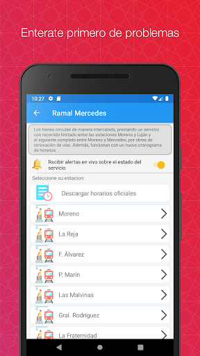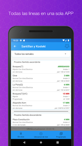 يعد النقل بالفعل تطبيقًا لرؤية الوافدين القادمين على المحطات والقطارات (التي تديرها القطارات الأرجنتينية) ، و subtes و prememe br> ستتمكن أيضًا من جدولة جداول الخروج في منزلك ترى الجداول التي يجب أن تصل إليها القطار أو أفضل إنشاء إنذار في الوقت الذي يجب أن يصل إليه وإعلامك بمدى عدد الدقائق المفقودة. قل في الوقت الحاضر).