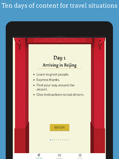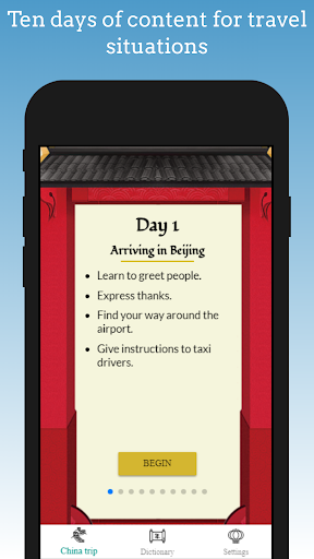 The fastest and most practical Chinese travel app to speak basic Mandarin Chinese in only 10 days! Travel China - Speak Chinese in 10 Days Offline will help you travel through China with minimal effort and practical ease. The app offers you real-life tourist situations and teaches you common words, sentences, and expressions to use as you explore this vast and diverse country.