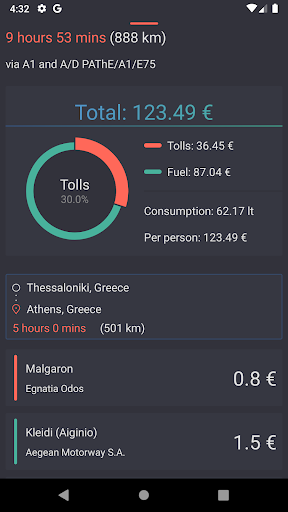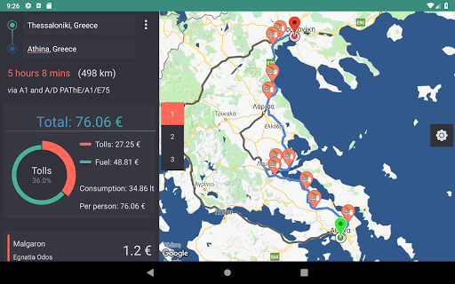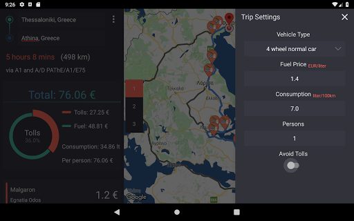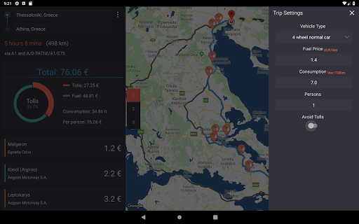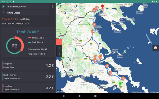 The application is fully up to date and it identifies all of the expected Toll Stations in any given route in Greece, where it also calculates the fuel cost for all vehicle and motorcycle categories of the trip, providing rich, meaningful and updated travel cost data where you can save, edit and share.