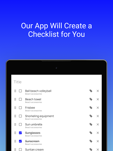 Baggage - Packing list is a free travel app, which helps you to pack the luggage based on planned trip parameters such as: season of a planned trip, trip type, activity on the trip, number and sex of travelers.