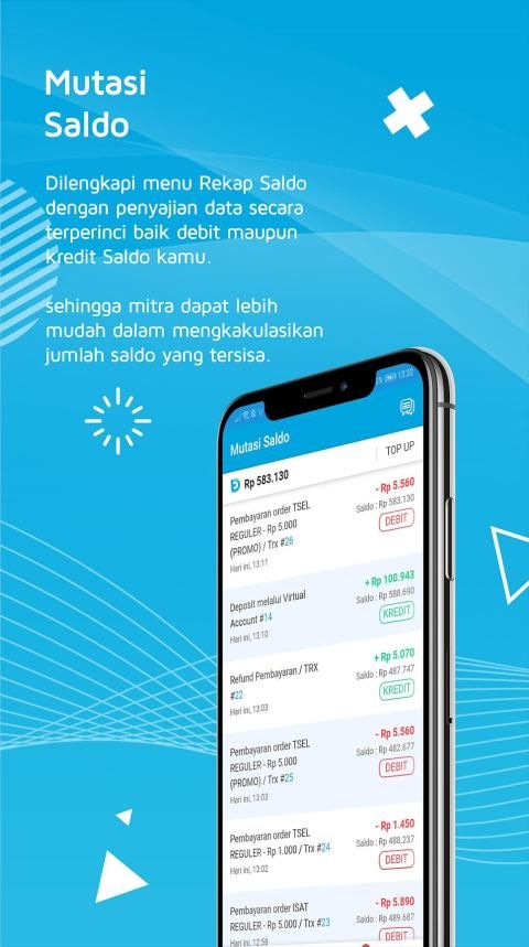 Dilengkapi menu Rekap Saldo dengan penyajian data secara terperinci baik debit maupun kredit Saldo kamu. Sehingga mitra dapat lebih mudah dalam mengkakulasikan jumlah saldo yang tersisa. Dan masih banyak lagi...