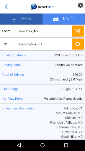 Type in two locations and quickly calculate the driving distance, flight time, closest airport to your destination, and more.