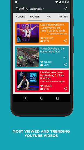 Get worldwide trending searches, videos, reddit posts, news, hashtags and wiki articles at your fingertips.