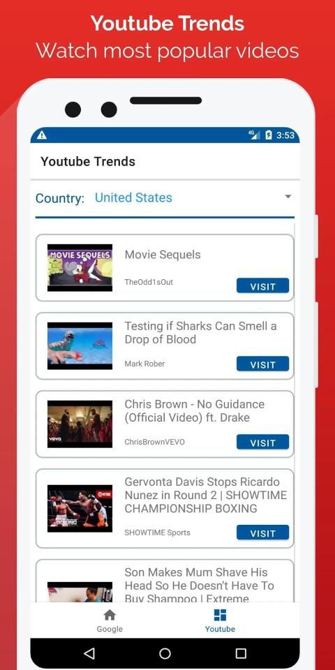 Nowaday it's really difficult to have an overview of all trends. With "Trends Ranking" you see all hypes at a glance. Our app provides you with all daily trends on Google and on Youtube and that sorted by country and date!