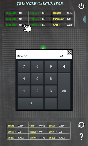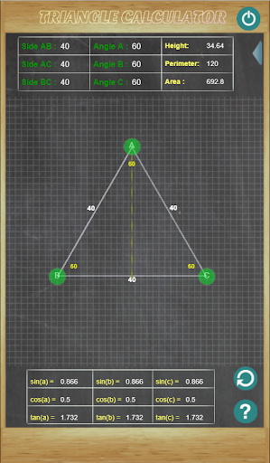 ✓ Our app will give you all the information about any triangle such as sides, angles, height, perimeter, and area.