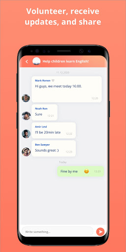 Volunteering is just a click away! Log into your organization, and start contributing. Find the best possible volunteering opportunities in your area. Easily report activity, chat with volunteers and share great moments with your friends.