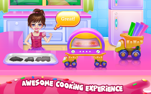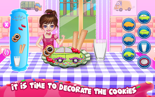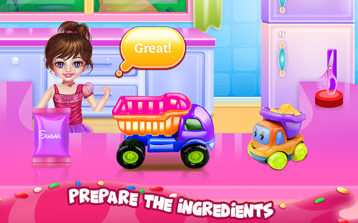 Play our new cooking game where you will try to infuse the art of cooking with your favorite hobby, the trucks. Follow our recipe for these sugar cookies shaped as trucks and have a good time. In order to respect your recipe, you must purchase the required items from different areas in the shop. Your first mission will be to join our little baker to the supermarket where you will supply all of the ingredients from your list. Search for the proper things in the shop and make sure you won't leave without paying for them. Move to the kitchen and then grab a big bowl, that is actually a truck with a usable container, in which your dough for the cookies is about to be made. Step by step you will be taught how to use each tool and ingredient for your recipe. The butter, the eggs, the sugar, the baking powder, the flour, and the vanilla extract will go together in order to be blended. Smooth the composition and move to the step where you will give a special shape to that cookie dough. Use the truck shapes from the tray to lay down the mixture and place it in each of those three. Next, you will add the tray into the oven where the baking process begins and where the cookies start their magic. When these yummy sweets