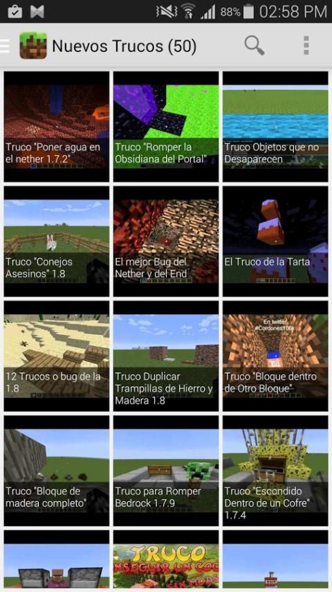 This useful application will help you to learn new tricks that you can implement in the wonderful world of minecraft created by Notch, Mojang, will give you an incredible advantage to new players and even your friends will ask how you know so much of minecraft.