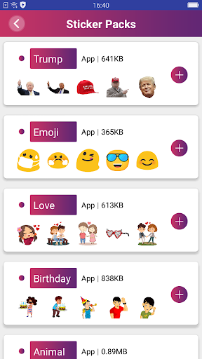 Choose your favourite sticker pack like Trump, Animal, Birthday, Christmas, Emoji, Love...