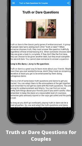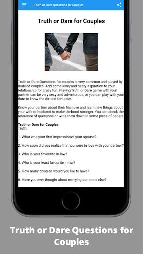 Download Truth or dare questions for couples app for get learn more and fun about relationship.