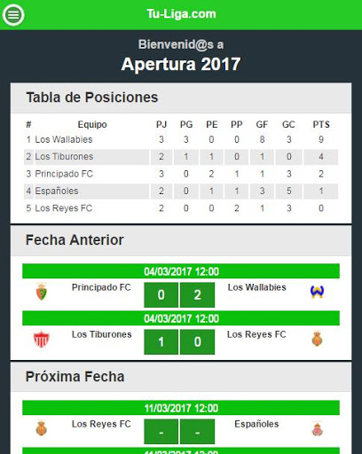 Tienes acceso a tu liga y podrás ver la tabla de posiciones de tu equipo, los resultados de los partidos, la tabla de goleadores, estadisticas, etc.
