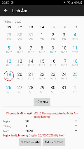 - Integrate lunar calendar, convert solar day to lunar day and vice versa.
